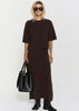 "Madina Short Sleeve Knit Mocha Brown" fra Twist & Tango. En myk og feminin strikket med rund hals og 3/4 ermer. Den luksuriøse blandingen av superfine alpakka og ekstra fin merinoull gir en behagelig kvalitet med både varme og letthet. I fargen Mocca får toppen et sofistikert og tidløst uttrykk, perfekt til både hverdags og mer pyntede anledninger.